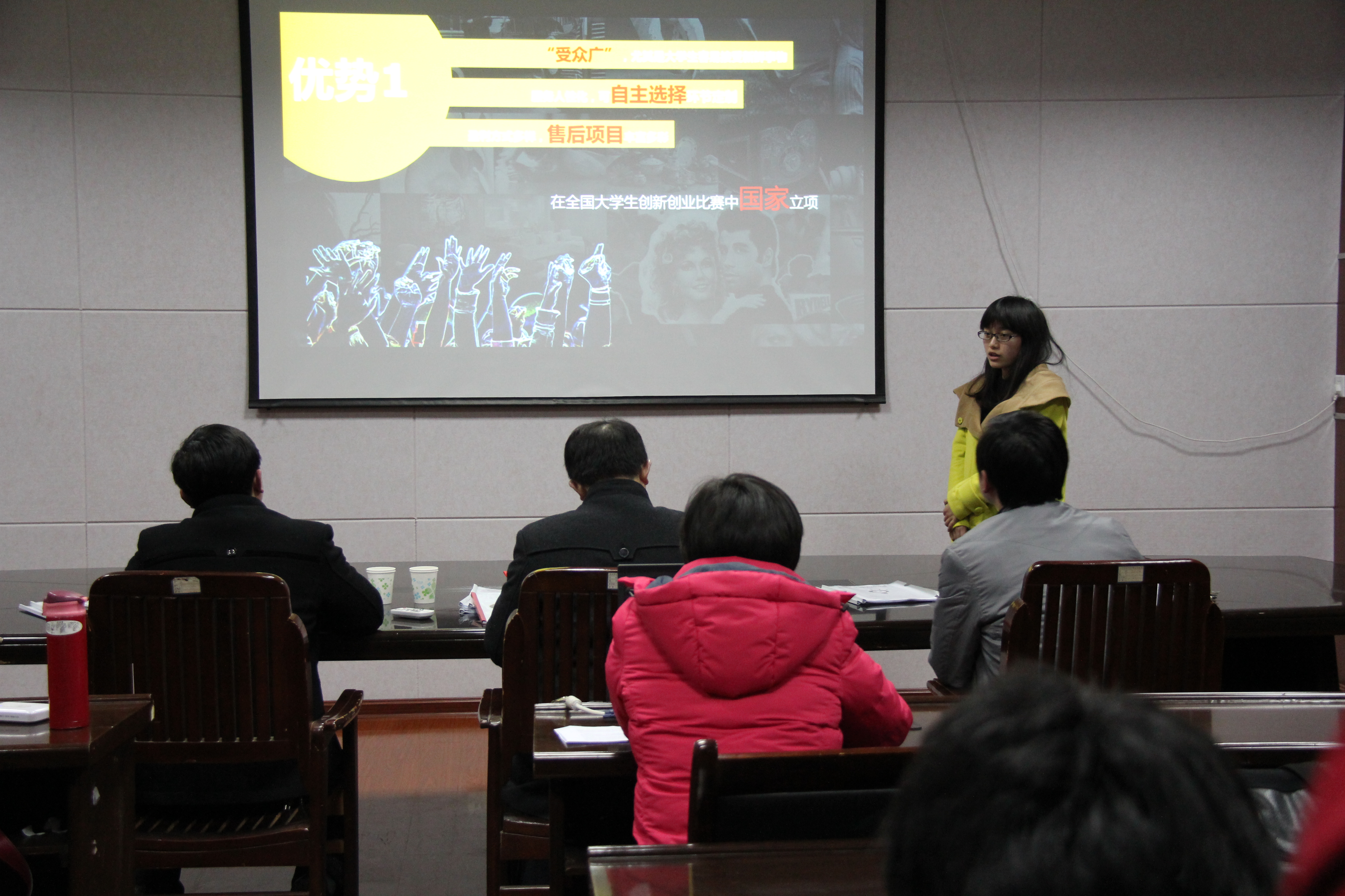 2014年3月4日晚7:00,第七届“挑战杯”大学生创业计划竞赛经济贸易系选拔赛在系会议室拉开序幕。本次大赛以“创新、创业、创未来”为宗旨,着力培养当代大学生创新精神和创业能力,提高学生自主创业的意识。系分管教学工作副主任杨荣明、电子商务教研室主任兼系实训中心负责人吴自爱、团总支负责人王剑程出席此次比赛并担任评委。本次选拔赛共吸引来自系12级、13级各专业的11支团队。