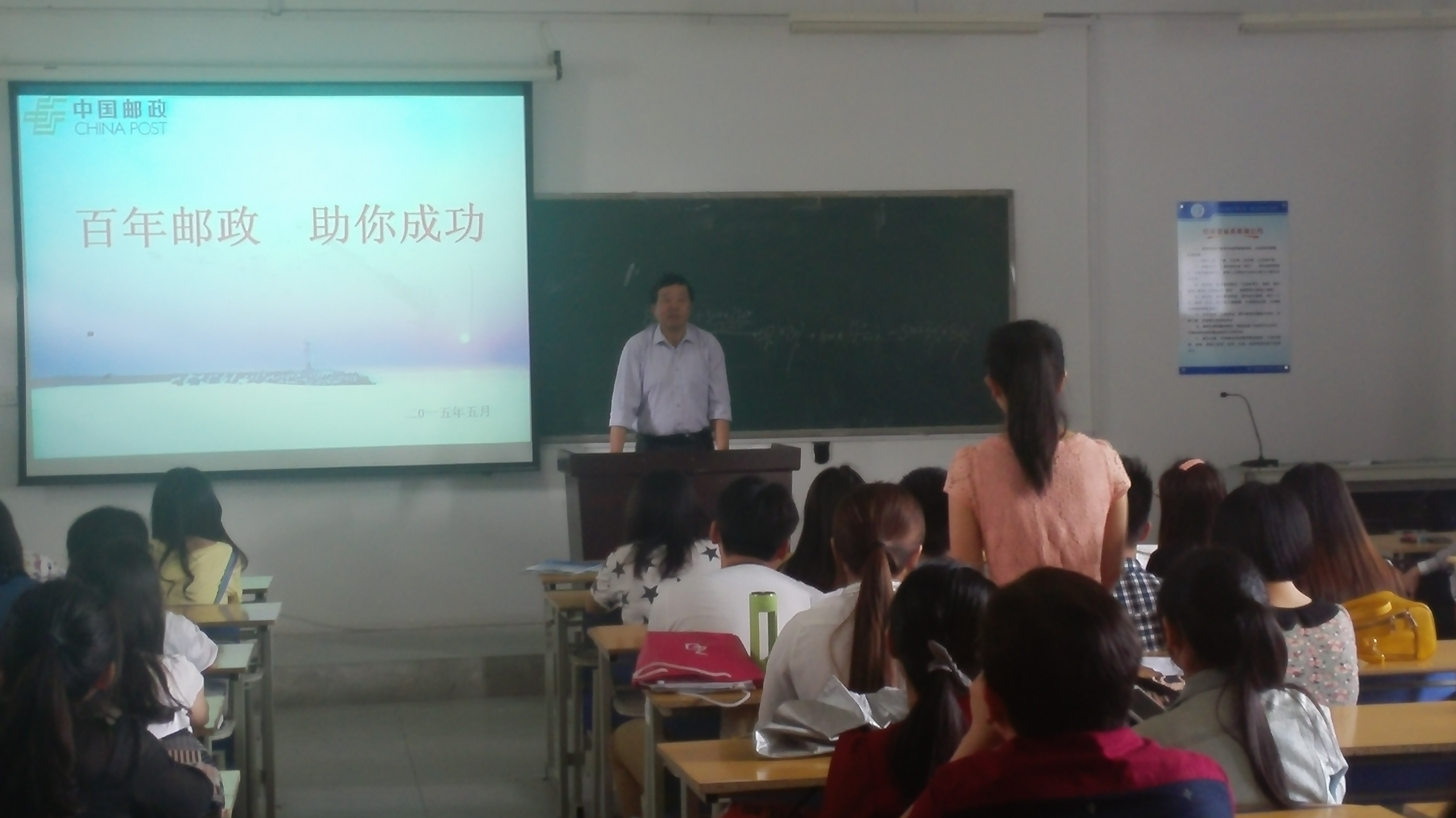 5月9日下午四点,中国邮政集团公司池州分公司在经贸系博识南302举办专场宣讲会,我系11级毕业生及部分12级同学参加。