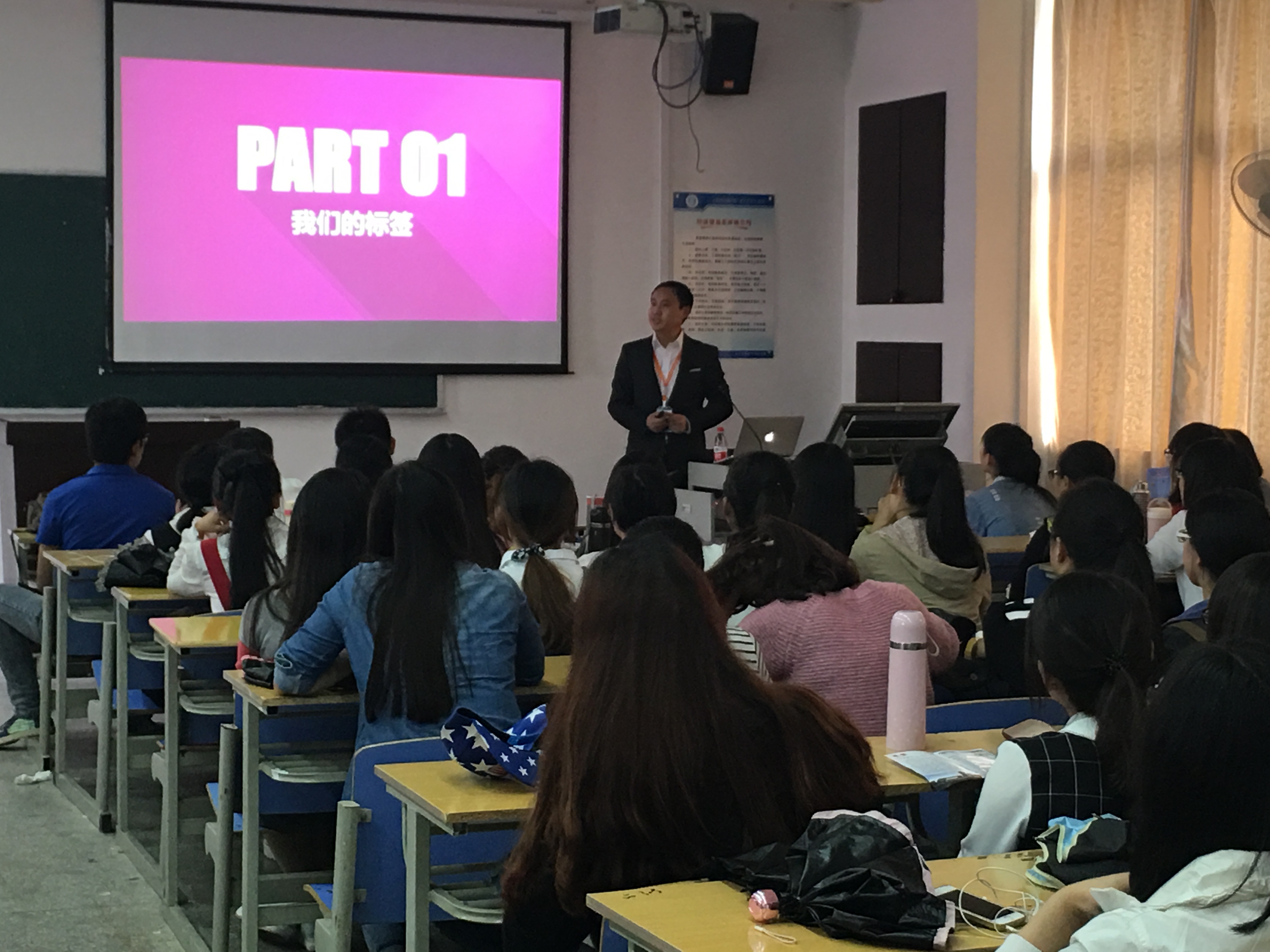 刘耕向同学们介绍了奎鑫公司概况,作为传统钢贸行业创新的新典范,公司在全国同行业中排名前列。介绍了公司的部门及高管团队的组成和福利政策。奎鑫公司一直秉承着“律己、尊重、信任、协作、卓越”的企业核心价值观,不断发展壮大,公司的愿景就是要成为领先的钢铁贸易商。