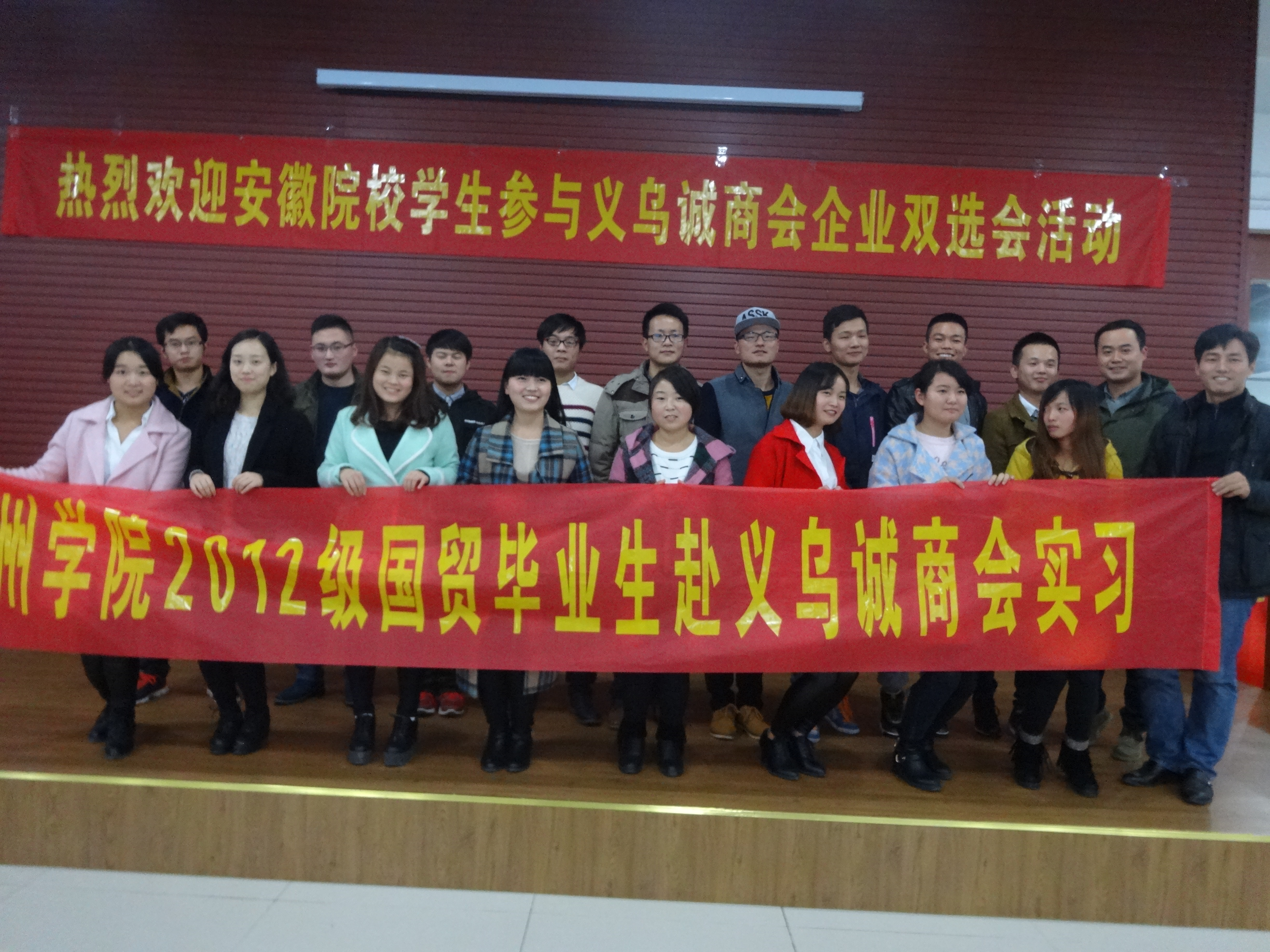 11月21日,商学院2016届国贸毕业生开始陆续奔赴企业实习,首批集中离校的26名学生在教研室主任胡鹏老师和辅导员张汀老师的陪同下共同前往了义务诚商会。