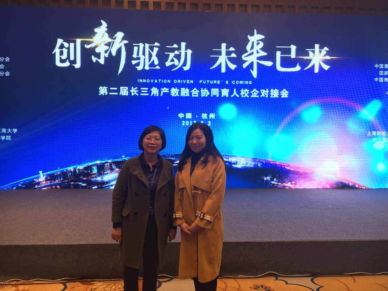 第二届长三角产教融合协同育人校企对接会于2017年3月2日-3日在杭州召开,来自江苏、浙江、上海和安徽地区部分高校的400余名教师参加了会议,商学院项桂娥教授和王丹老师应邀参会。