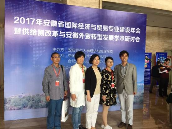 4月21日至22日,2017年安徽省国际经济与贸易专业建设年会暨供给侧改革与安徽外贸转型发展学术研讨会在安庆举行。研讨会由安庆师范大学经管学院主办,来自省内各大高校的教师参加了此次年会。我校商学院项桂娥教授和胡鹏等四位老师应邀与会。