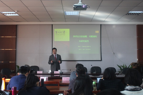 11月23日上午,天津财经大学商学院教授蔡双立应邀来我院作题为“学术论文的选题、问题凝练与研究规范”的学术讲座。商学院全体教师聆听了讲座。学术院长宋思根教授也参与了此次活动。讲座由商学院院长项桂娥主持。