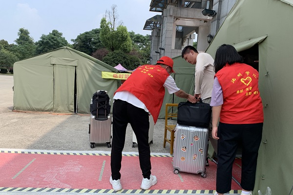 早上,学院领导、辅导员及有关老师深入学生返校一线,检查指导学生返校报到工作,学生志愿者们准时到岗、积极参与志愿活动,引导返校学生完成健康码核验、体温检测、报到登记等工作,并温馨提醒学生们返校后需遵守疫情防控常态化形势下学校的各项管理规定。