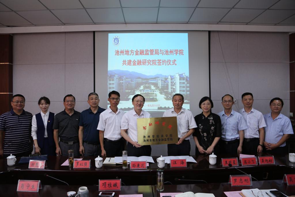 最后,tyc8722太阳集团纪委书记汪海与池州市地方金融监管局局长孙康达共同签署了《金融人才实习基地》和《金融研究院》合作共建协议,并举行了揭牌仪式。