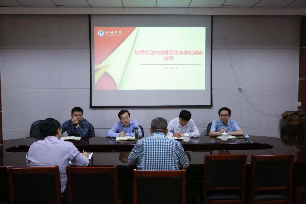 4月25日下午,校党委书记孙晓峰一行到商学院调研指导工作。