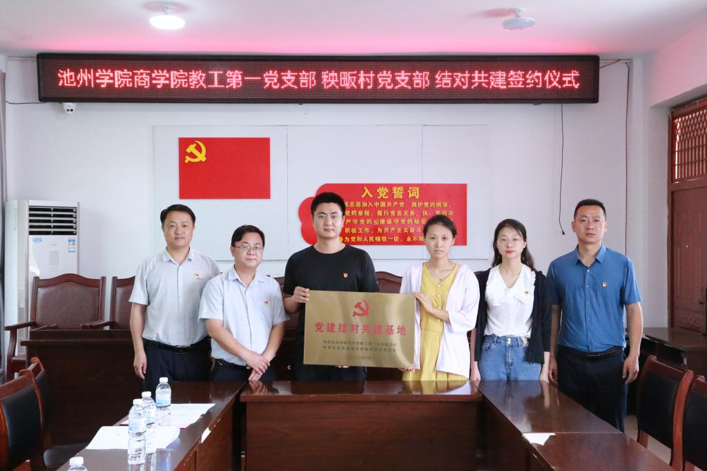 为更好发挥党建引领作用,深化高校服务地方功能,6月1日上午,太阳集团网站8722教工第一党支部与东至县官港镇秧畈村党支部开展“党建引领增合力、产教融合促发展”基层党支部共建活动。商学院副院长吴自爱、教工第一党支部书记谭庆及相关人员,秧畈村第一书记左罗等村委会干部出席活动。