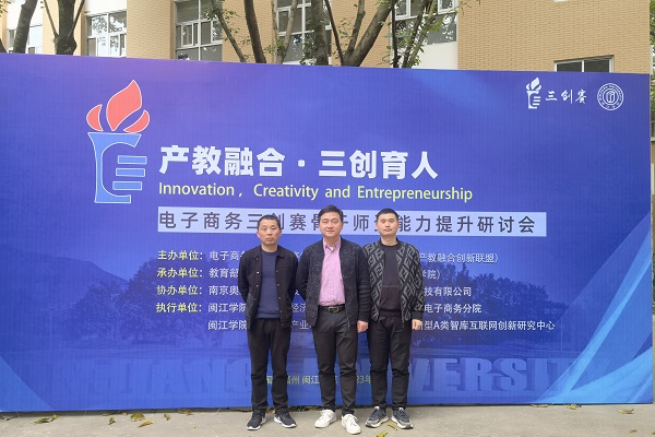 为进一步提高高校指导老师与评委对全国大学生电子商务三创赛规则和体系的了解和把握,3月17-24日,由全国三创赛竞赛组织委员会(全国电子商务产教融合创新联盟)、西安交通大学联合主办,教育部电子商务专业虚拟教研室建设基地—闽江学院承办的首届全国电子商务三创赛骨干师资能力提升培训指导会在闽江学院隆重召开,来自全国近百所院校的200多位教师代表参加了培训指导会,商学院教师王剑程、苏飞、章健参加了培训指导会。