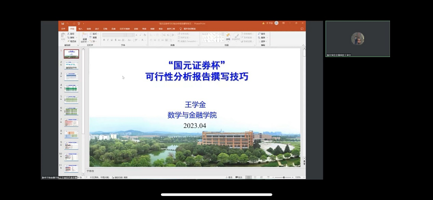 此次线上讲座中,王学金老师从近三年可行性分析报告的省赛成绩开始,详细介绍了可行性分析报告的评分规则、报告结构以及可行性分析报告的落脚点——上市可行性分析,用详细示例展示了撰写上市可行性分析的技巧和方法。讲座中王学金老师表示可行性分析报告的撰写应从注重数量转为注重质量,并分享了自己指导学生参加比赛的心得体会。