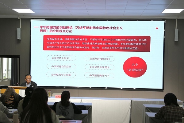 为深入学习贯彻习近平新时代中国特色社会主义思想和党的二十大精神,5月10日下午,院党委委员、副院长阳光宁在博识北401多功能实验室为商学院第二十七期入党积极分子培训班全体学员讲授党课,授课主题是“学习宣传贯彻党的二十大精神”。