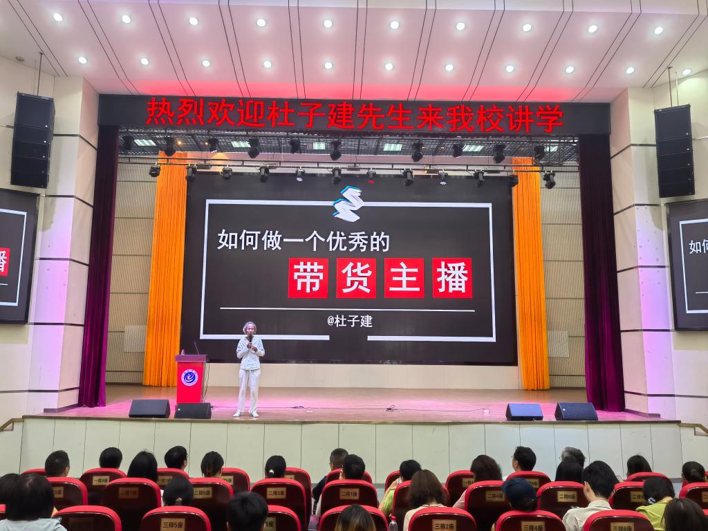 讲座中,杜子建结合自身创业经历,通过具体的案例分析和现场演练的方式,从电商主播的历史角色、当下角色、未来角色等入手,深入浅出地讲解了直播运营重点、销售内容创作、带货促销流程等方面的知识,帮助学生们进一步了解电商营销技巧,拓宽电商创业思路,同时向年轻的大学生们抛出了“橄榄枝”,提供实战的学习机会。最后,他与同学们进行了热烈的交流,耐心解答了同学们关于专业知识和电商创业方面的困惑。