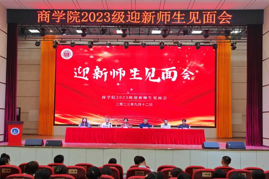 9月12日上午,商学院2023级迎新师生见面会暨“院长第一课”在博古大礼堂隆重举行。商学院领导班子、教研室主任、党支部书记、教师代表、高年级学生代表、辅导员以及2023级796名新生参加了见面会,见面会分两场进行,会议由商学院党委负责人肖宁生主持。
