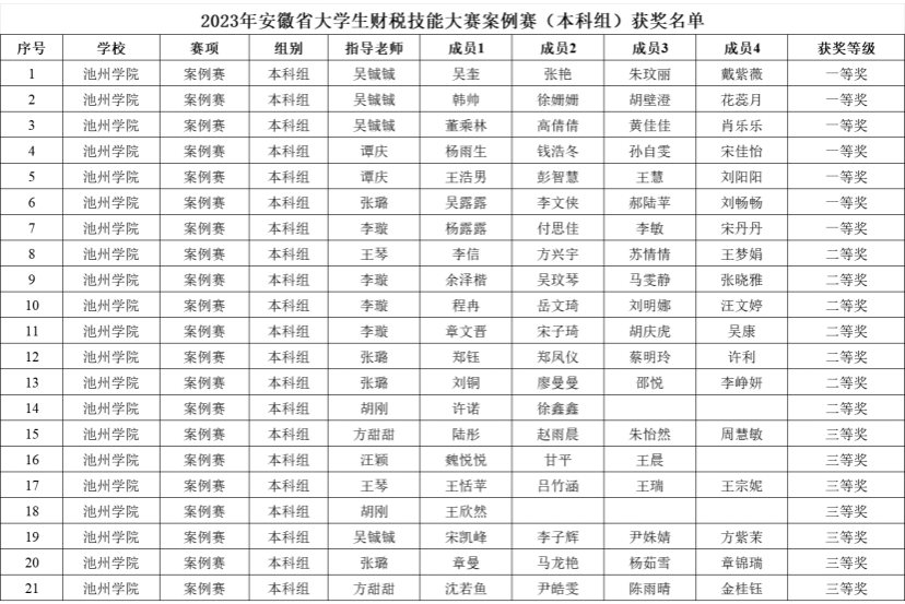 12月20日,2023年安徽省大学生财税技能大赛(省级B类赛事)评审结果公布,经大赛评审委员会初审、复审,商学院团队荣获一等奖7项、二等奖7项、三等奖7项,吴铖铖、谭庆、张璐、李璇老师荣获“优秀指导教师”称号。