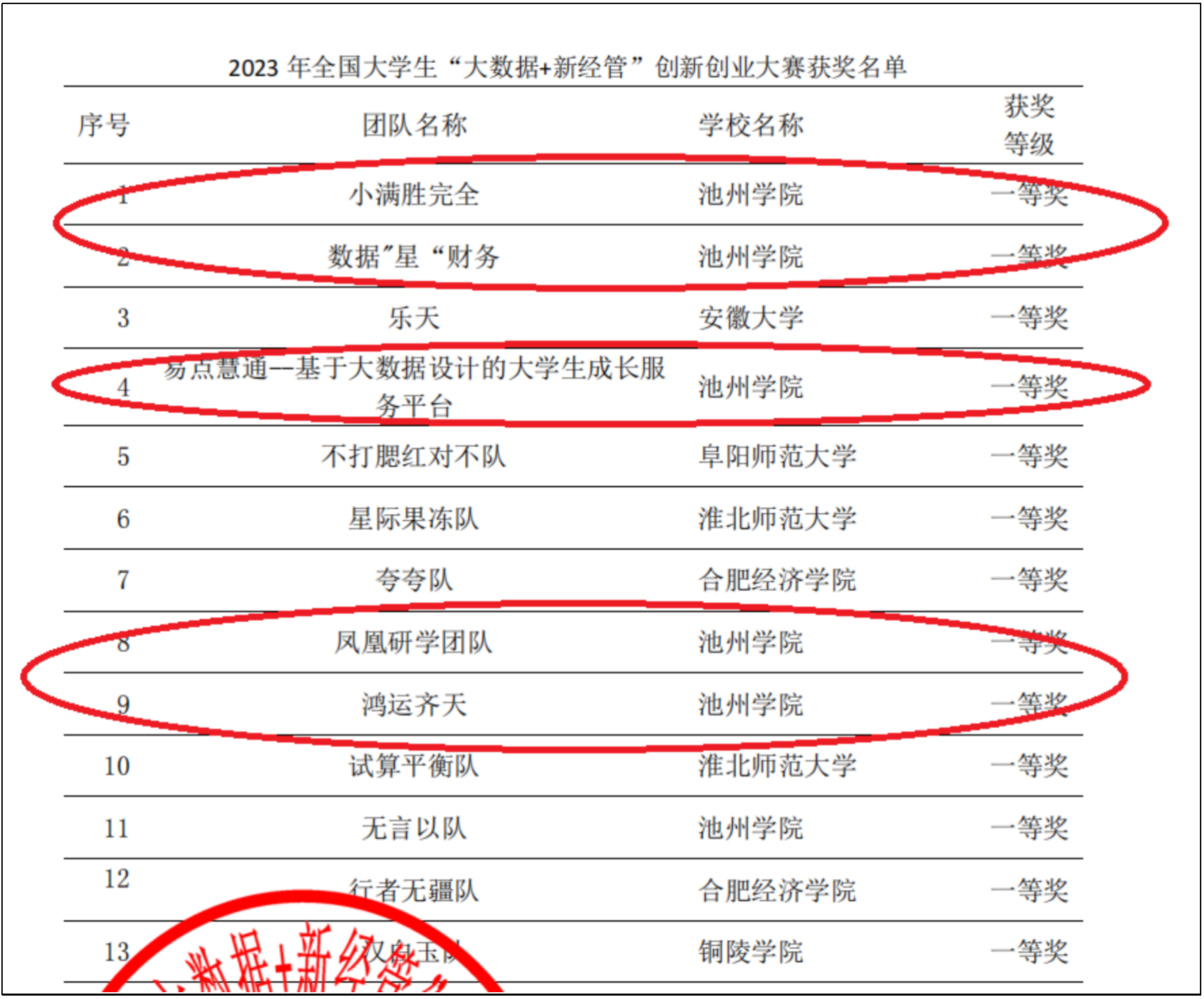 近日,2023年全国大学生“大数据+新经营”创新创业大赛落下帷幕,全国共有218支队伍入围决赛,经过紧张激烈的角逐,我校学子荣获一等奖8项,二等奖21项,三等奖22项,累计获奖51项,荣获优秀组织奖。