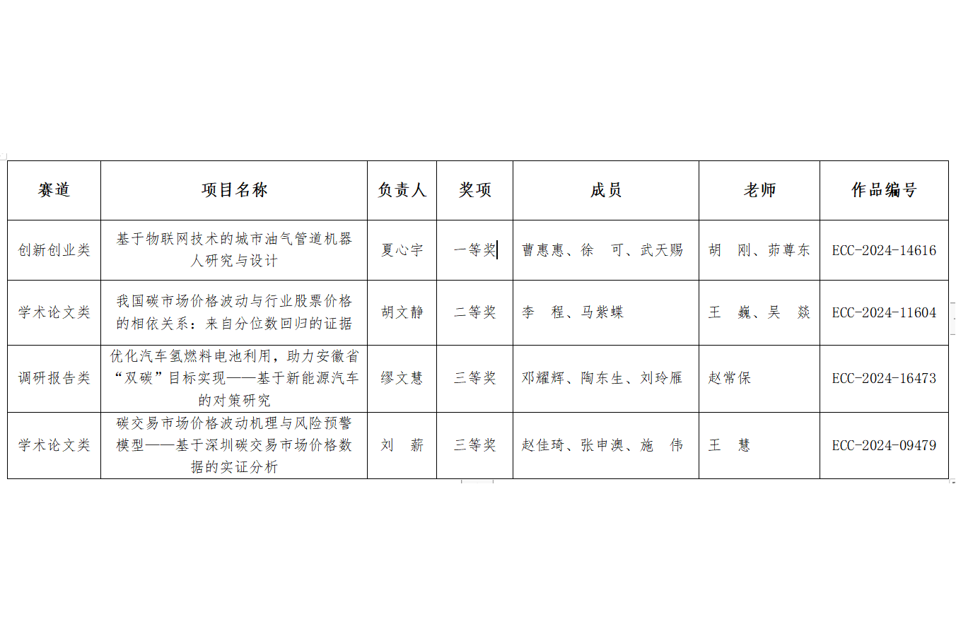 近日,第十届全国大学生能源经济学术创意大赛安徽赛区获奖名单公示,我校在此次大赛中荣获安徽省一等奖1项、二等奖1项目、三等奖2项,晋级国赛1项。实现我校在省赛、国赛中的突破。此次比赛,我校商学院经济学教研室、笃行创赛协会积极组织统筹,培训选拔队伍参赛。