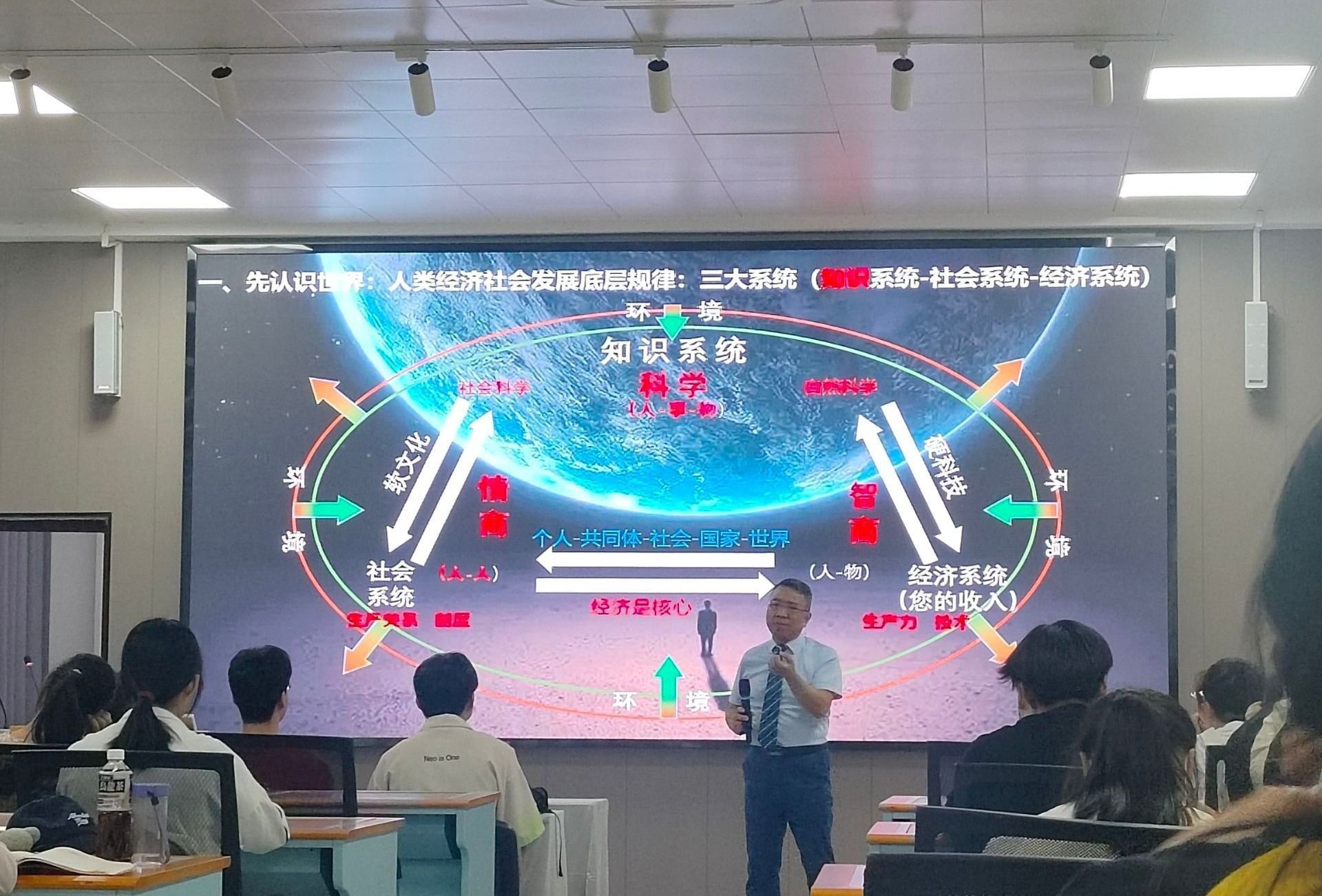 蒋满霖教授从数字经济的发展角度出发,跟师生们分享了数字中国建设的现状,从理论角度阐述什么是经济、什么是数字经济、什么是新质生产力、数字的功能、发展历程等最新知识。呼吁师生在数字经济应学习掌握前沿技术知识,培养数字思维,提高综合素质,提升自身的核心竞争力。