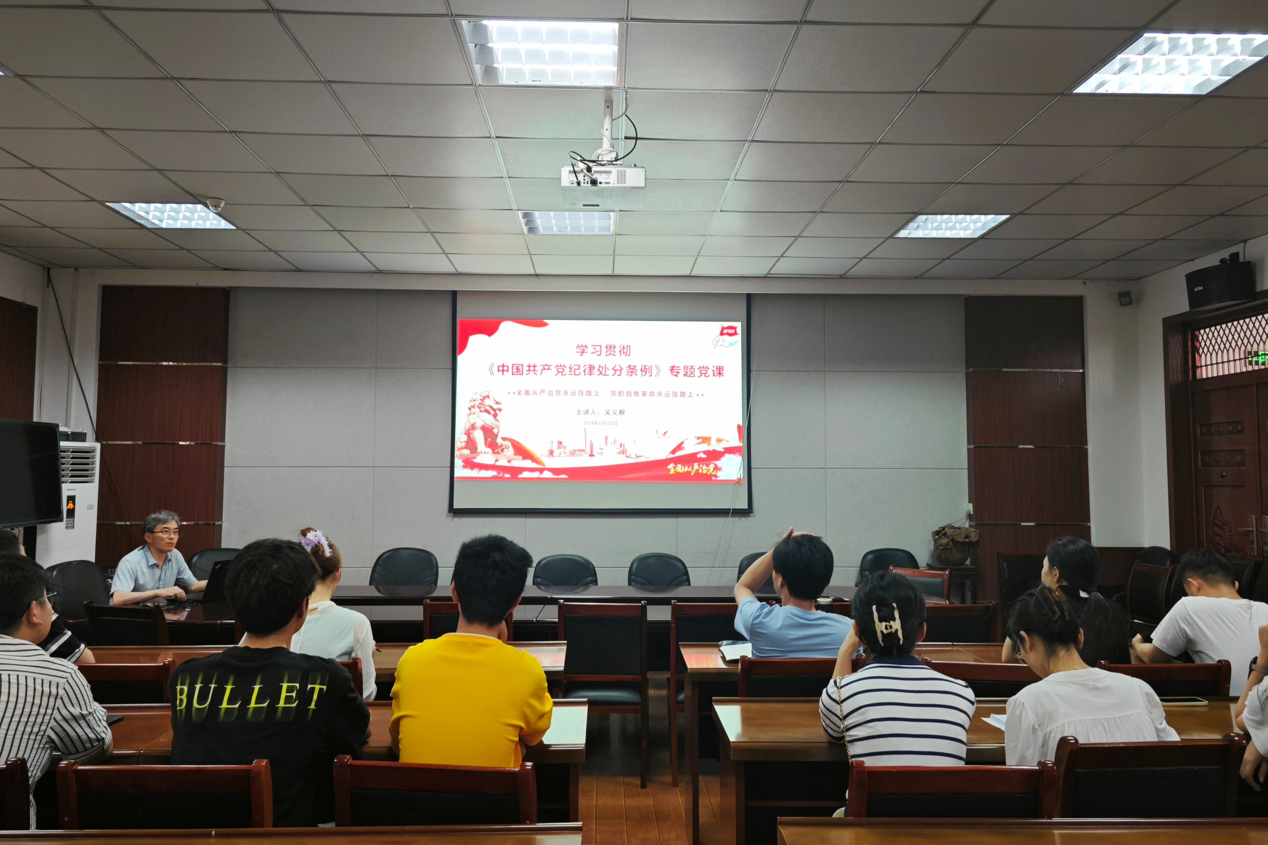 6月28日,太阳集团网站8722副院长吴义根在学院二楼会议室以“学习贯彻《中国共产党纪律处分条例》”为题为全院师生党员骨干讲授专题党课。