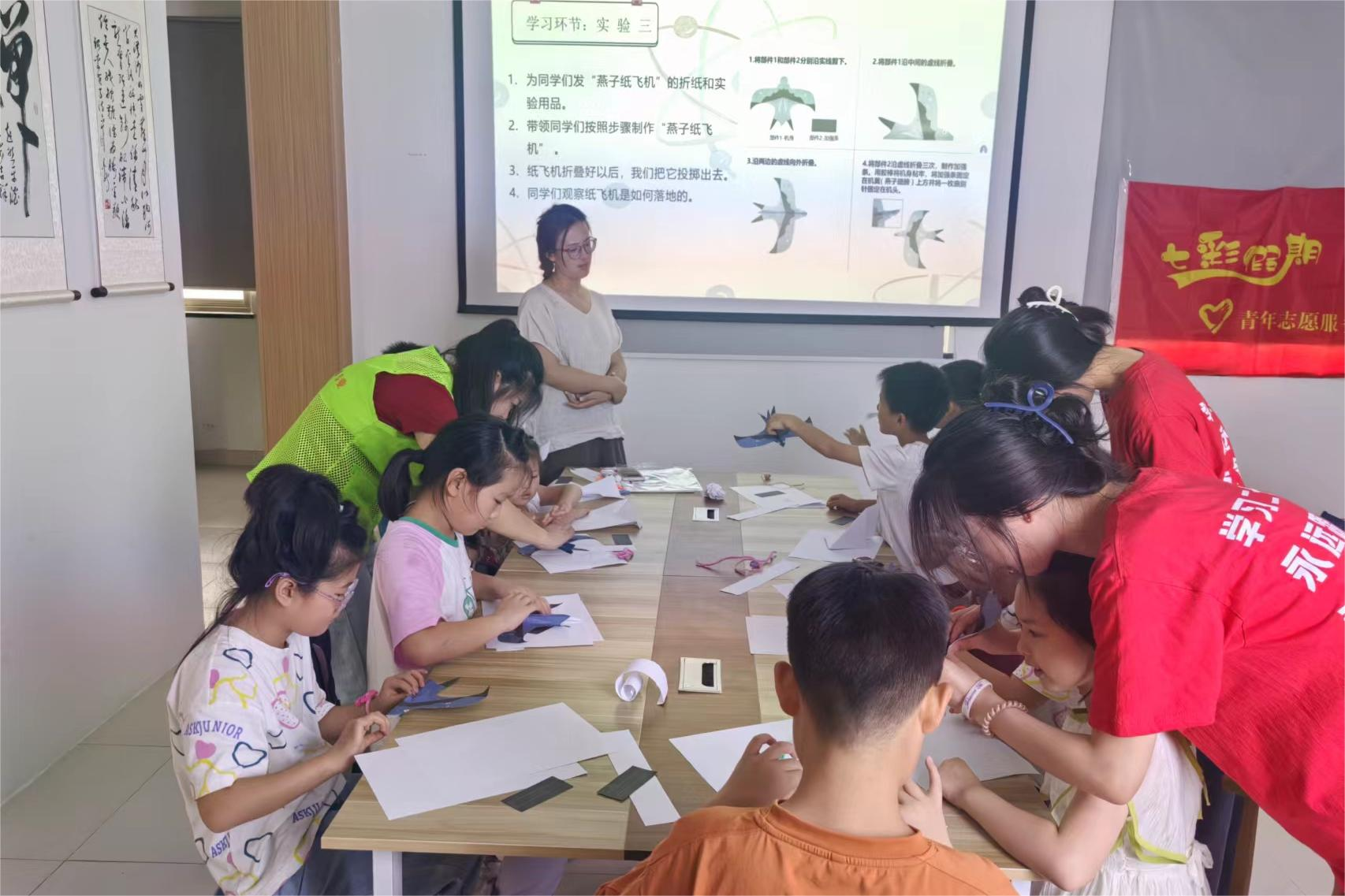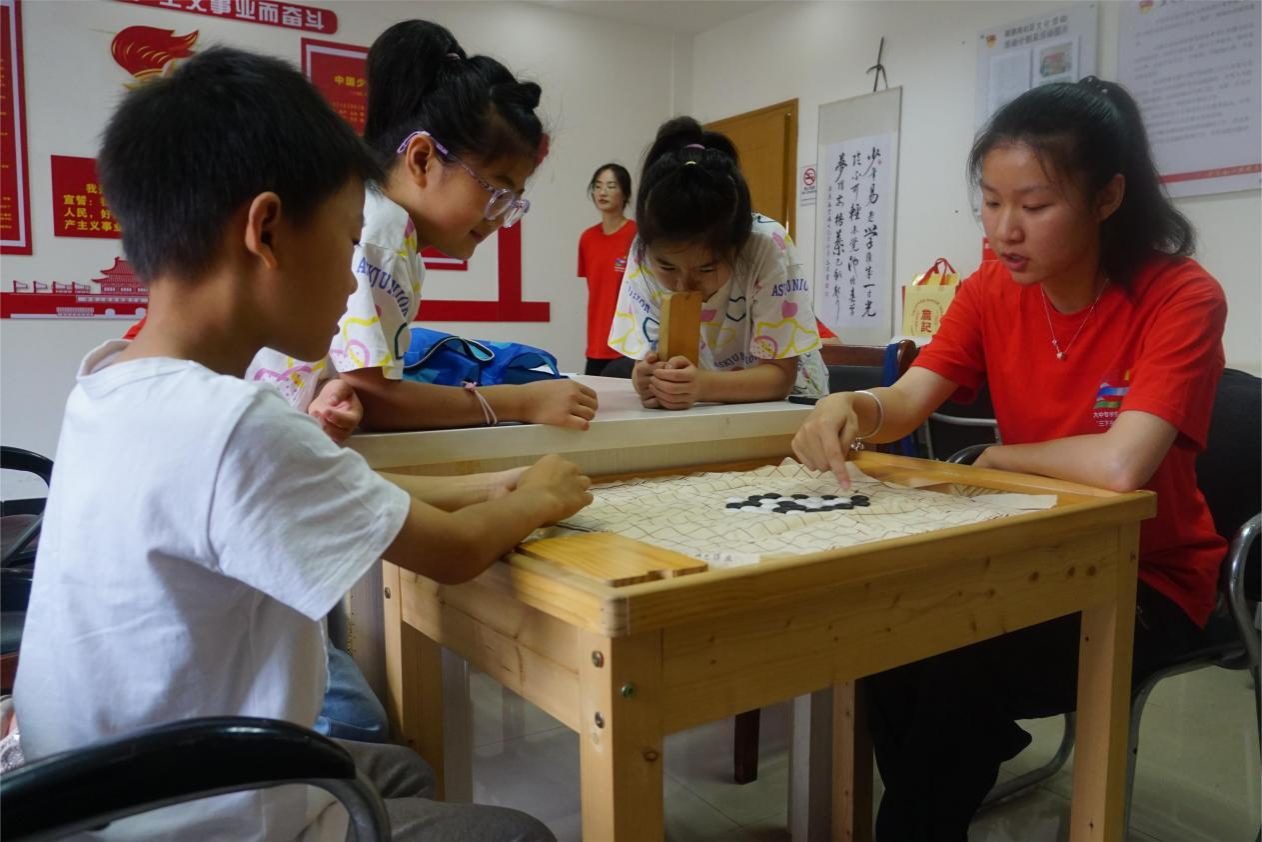 当第一缕晨光洒向大地,实践团的志愿者们整装待发,准时抵达翠屏苑社区,在社区工作人员潘主任带领下开展志愿活动。在科普讲堂开始前,志愿者们辅导孩子们完成暑期作业、“棋盘”博弈,在欢声笑语中,孩子们的思维得到了锻炼,与志愿者之间的友谊也悄然生长。