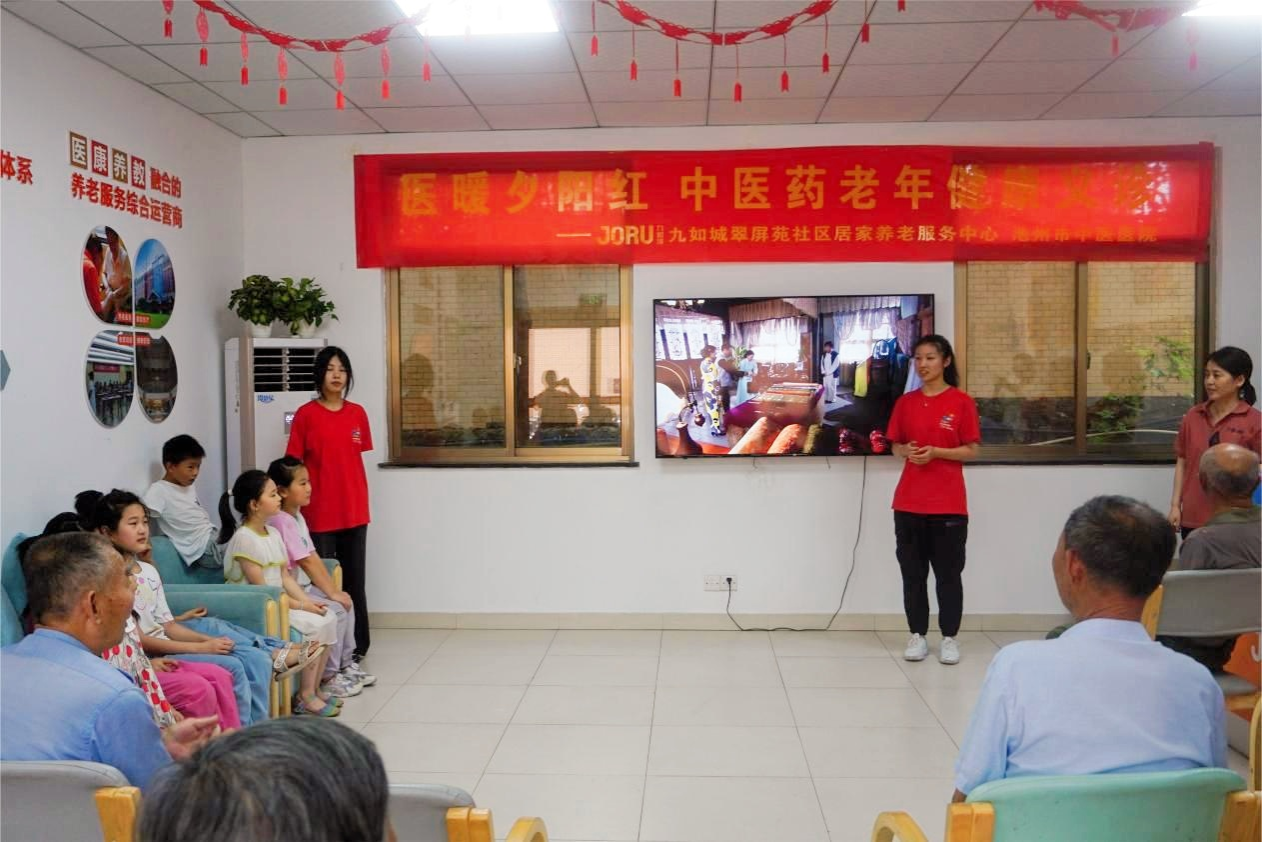 随后,实践团成员们带着小朋友们走进了老年活动中心,展开了一场以“爱心传递,温暖夕阳”为主题的慰问活动。活动在一首温馨的《大树妈妈》歌声中拉开帷幕,小朋友们精心准备的歌唱表演、吟诵唐诗等节目赢得了老人们的阵阵掌声,现场洋溢着欢乐和感动。志愿者们不仅为老人们送上了精心准备的慰问品,更用真挚的话语和行动传递了关爱与尊重,让老人们感受到了来自社会的关怀与温暖。