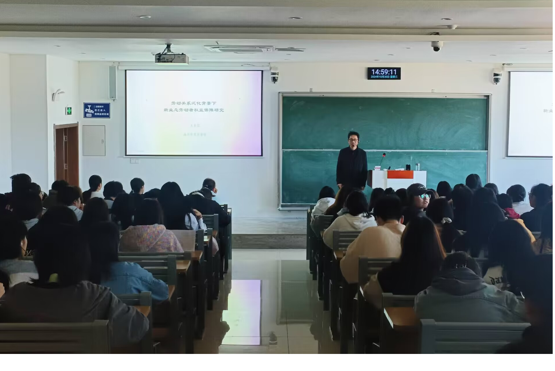 10月30日下午,太阳集团网站8722王来宾副教授在公共教学楼北阶301教室作题为“劳动关系泛化背景下新业态劳动者权益保障研究”的学术报告,人力资源管理专业约150名学生参加了报告会。报告会由2022级人力资源管理班学习委员朱子慧同学主持。