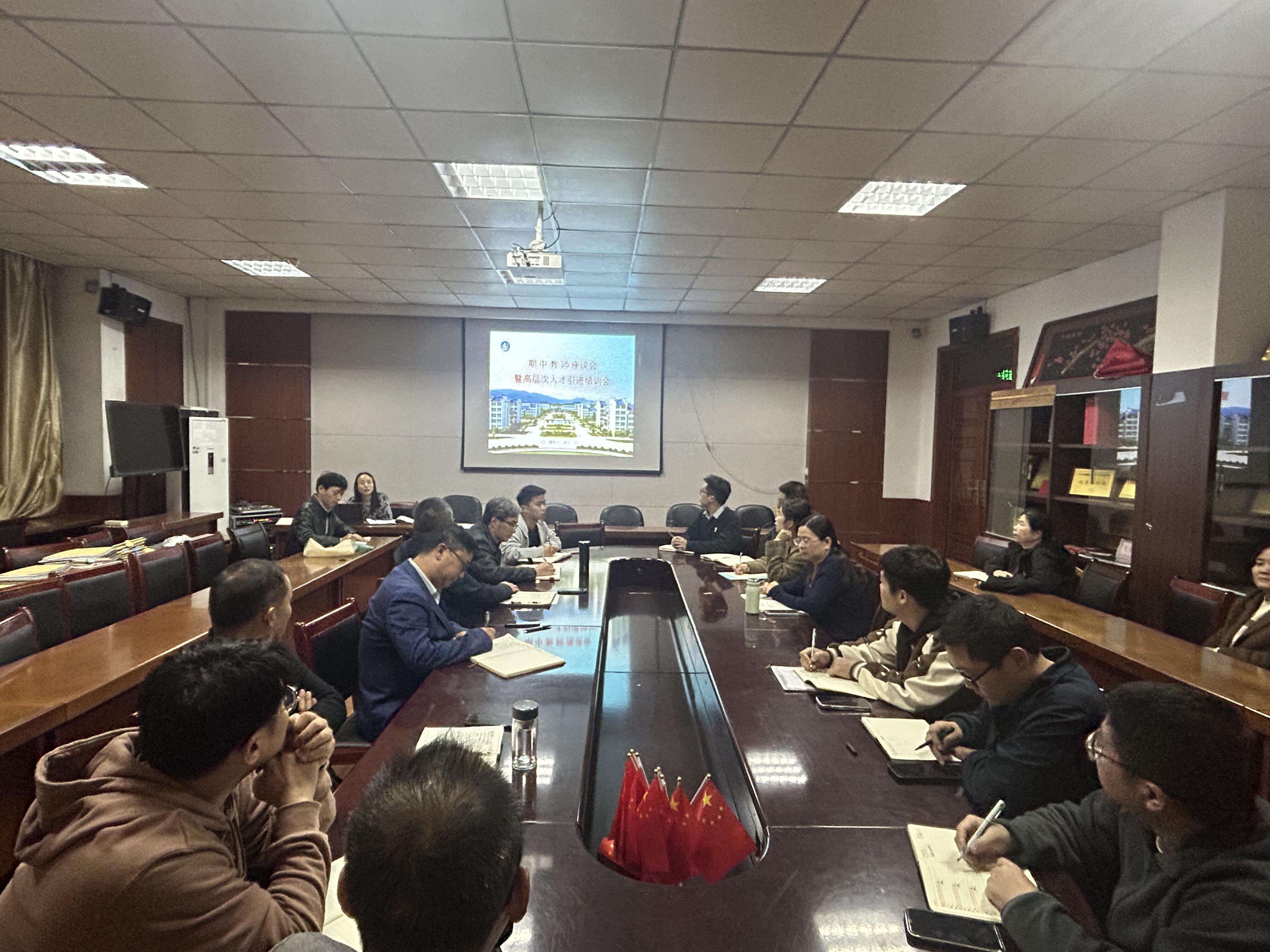接着,会议以期中教师座谈为主题,请出席的各位老师交流发言。老师们围绕科研团队建设、学历提升、职称提升、办公环境等方面积极发言,提出了一些宝贵的建议。