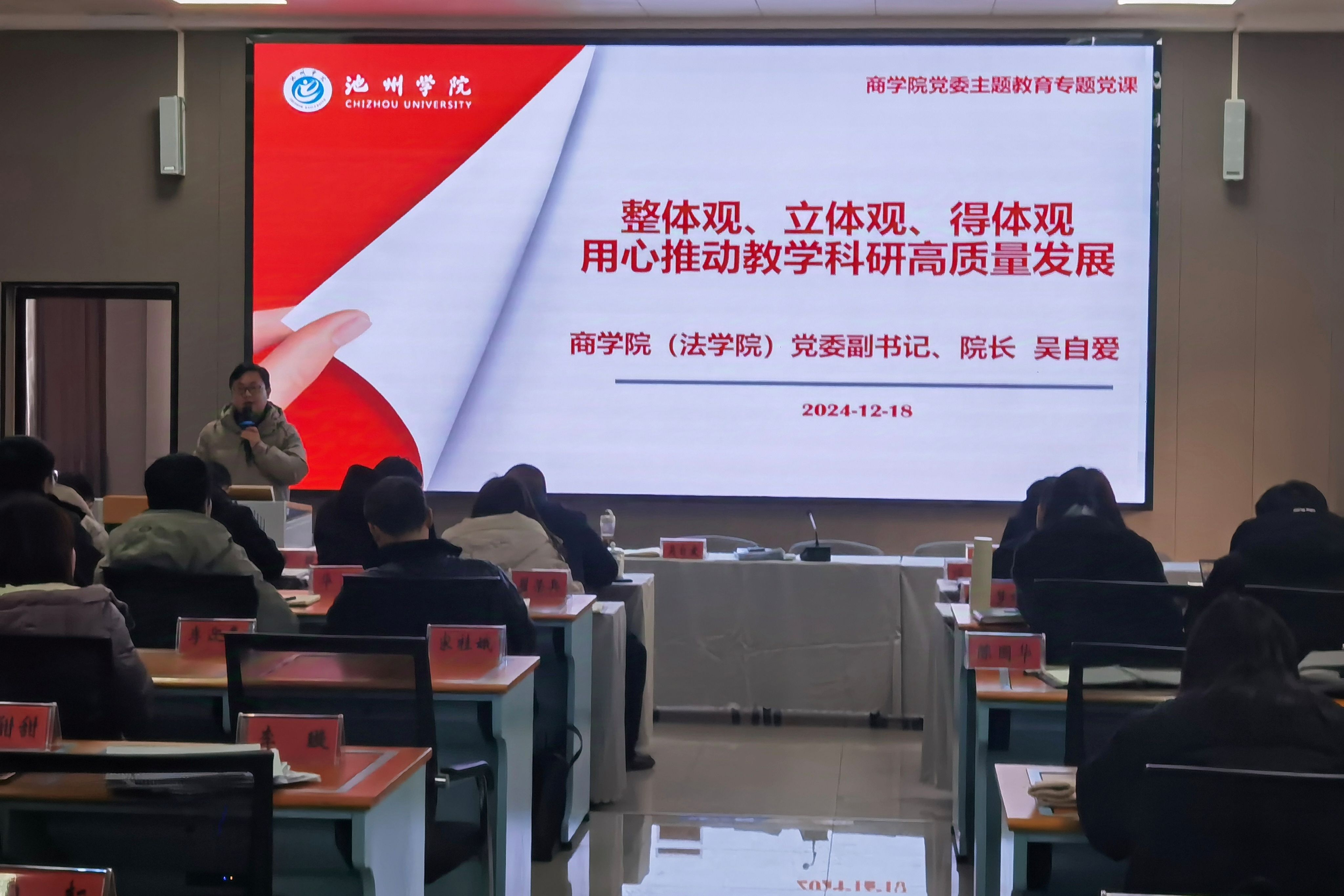12月18日下午,太阳集团网站8722院长吴自爱以“整体观、立体观、得体观,用心推动教学科研高质量发展”为主题讲党课,全体教师参加学习。