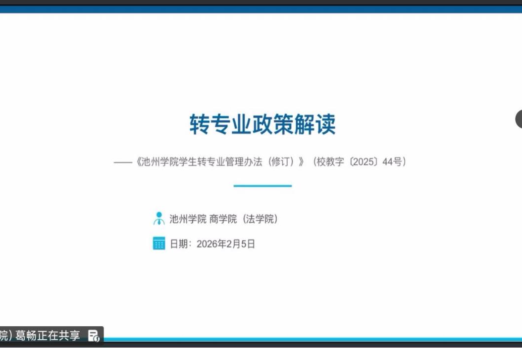 转专业是学生在大学阶段面临的一项重要学业选择,不仅关系到个人学习方向,也对未来职业发展具有深远影响。此次宣讲会的举办,有助于同学们在全面了解政策的基础上,结合自身实际,做出更加科学、理性的决定。学院也将继续秉持“以生为本”的教育理念,通过线上主题班会等多种形式,持续开展政策宣传与服务工作,助力转专业工作平稳有序推进,共同营造积极向上、支持学生发展的良好育人生态。