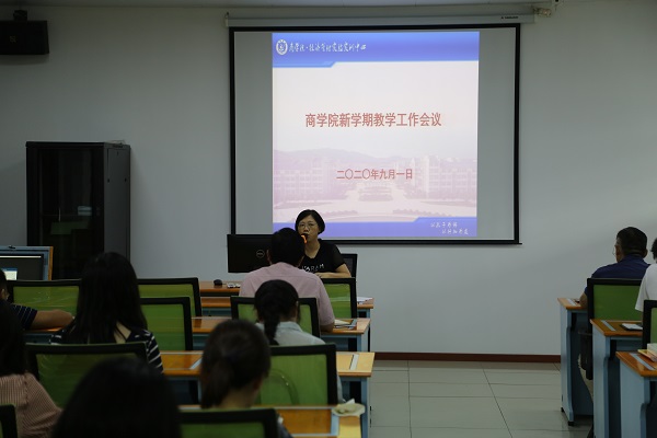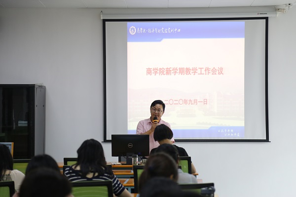 9月1日下午2:00,商学院在电子商务实验室召开新学期教学工作会议。会议由商学院院长项桂娥主持,商学院全体教师参加会议。