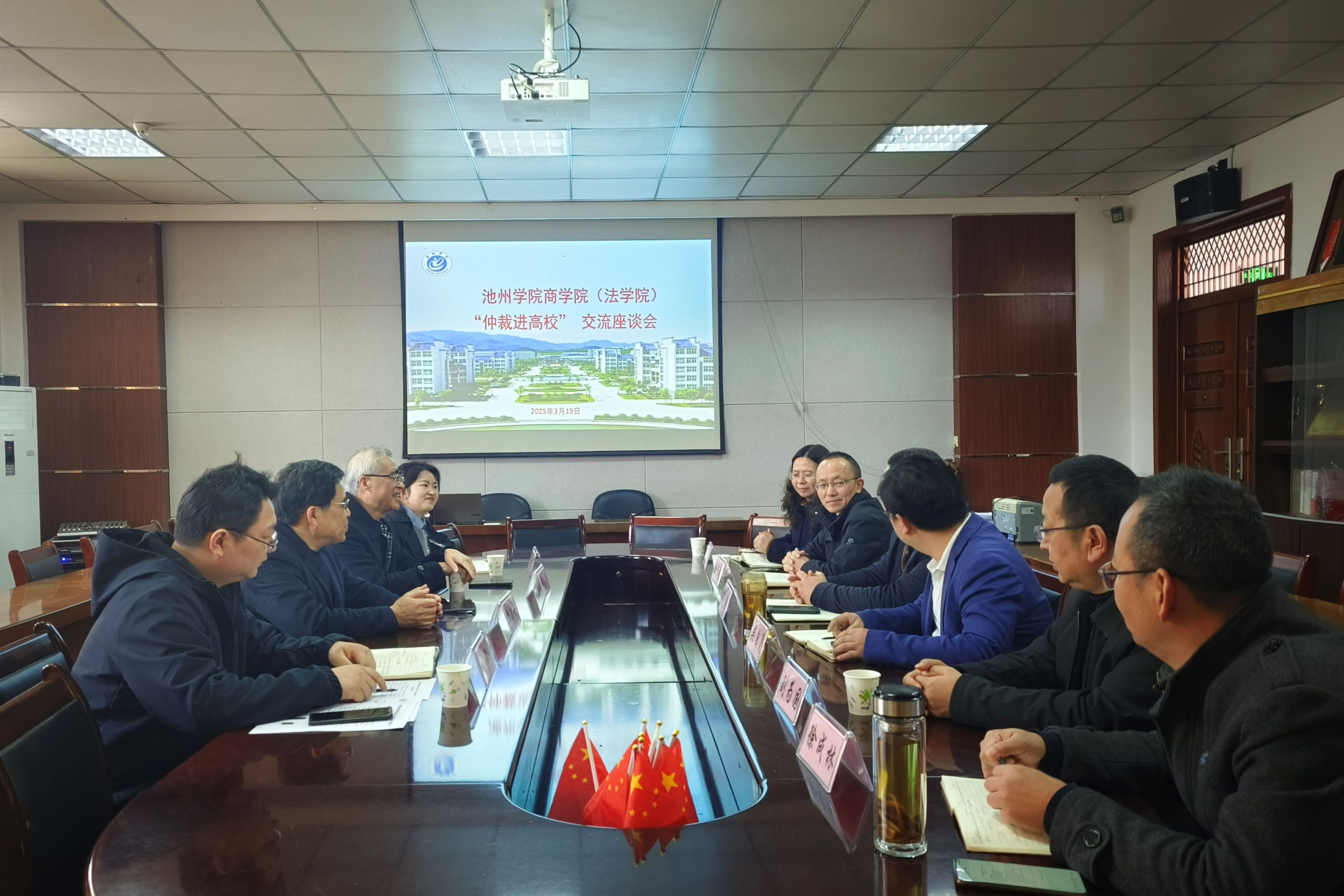 2025年3月19日,太阳集团网站8722与池州仲裁委员会在太阳集团网站8722会议室举行“仲裁进高校”主题活动。池州仲裁委员会驻会副主任陆启舟、秘书处副秘书长刘敬、仲裁员韩志才、立案室主任宁秀等一行,太阳集团网站8722党委书记肖宁生、院长吴自爱等出席此次活动。会议由太阳集团网站8722院长主持。