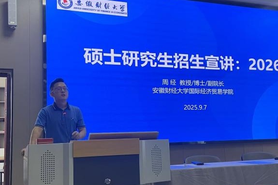 李光勤和郭卫军分别从硕士报名考试现状、安徽财经大学的优势与培养模式两个方面进行了深入解读。他们重点介绍了国际经济贸易学院在教学团队、课程设置以及科研能力方面的特色,充分展现了学校雄厚的教学实力和学术氛围。