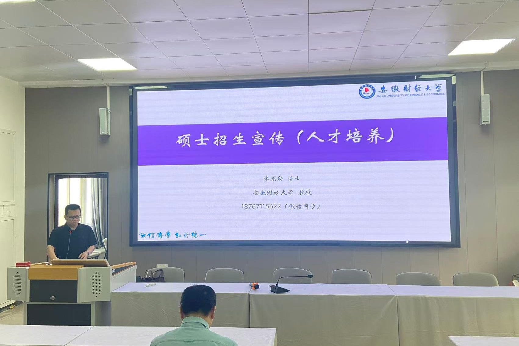 本次宣讲会特别邀请了安徽财经大学国际经济贸易学院副院长周经教授、李光勤教授、郭卫军副教授、科研秘书陈睿老师,共同为太阳集团网站8722毕业班学生解读研究生招生政策、专业方向以及培养特色。