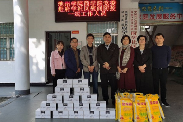 4月29日上午,商学院党委书记罗志刚、院长项桂娥、副院长吴自爱等一行4人前往结对共建的贵池区清风街道府学社区,看望慰问疫情防控一线的社区工作人员。