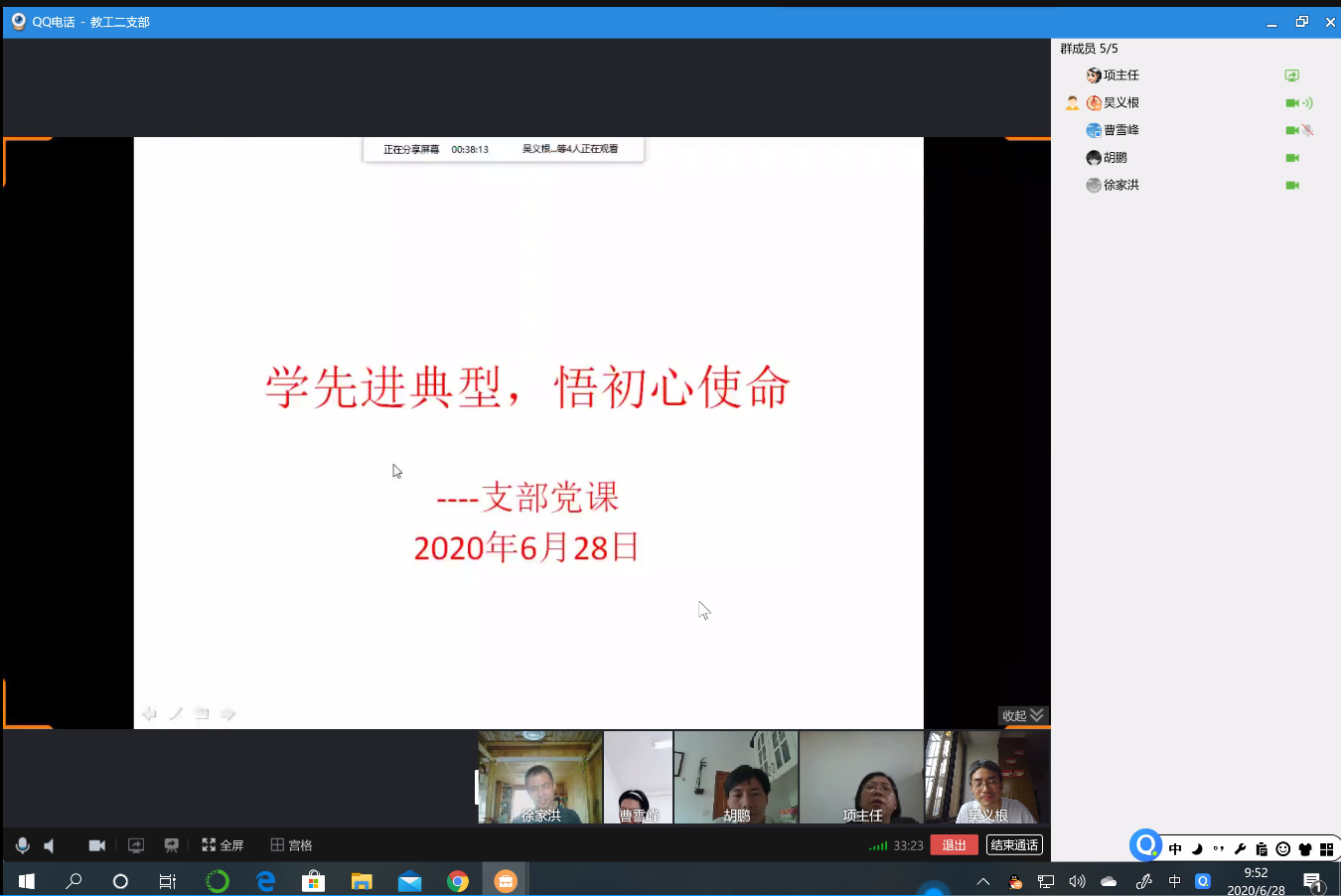 为贯彻落实党中央关于常态化疫情防控的决策部署,充分发挥高校基层党组织战斗堡垒作用和师生党员先锋模范作用,让党旗始终高高飘扬在疫情防控、返校复学和事业发展的全过程。商学院教工二支部于6月28日以“迎党的生日、讲战疫故事、悟初心使命”为主要内容召开了组织生活会,并开展了以“学习先进典型,悟初心使命”为题的微党课讲座。首先,院长项桂娥同志在组织生活会上率先讲述了“伟大英雄”和“平民英雄”的抗疫故事,并结合自身的工作实际畅谈了切身感悟,同时勉励大家在各自岗位上为抗疫做出自己的贡献。支部其他成员也分享了自己身边抗疫的所见所闻,畅谈自己的切身体会,并结合自身实际,明确了下一步努力的方向,大家畅所欲言。
