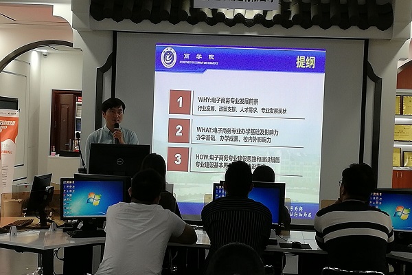 为了让新生尽快适应校园环境和学习生活,明确自我发展和成才方向,了解学校、学院并热爱所学专业,9月18日上午九点,商学院教工三支部和学生四支部在博识楼新商科综合实训室联合举行了电子商务专业新生入学主题教育。