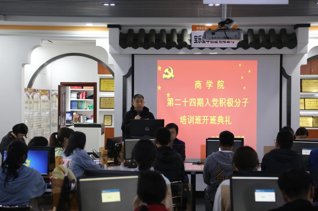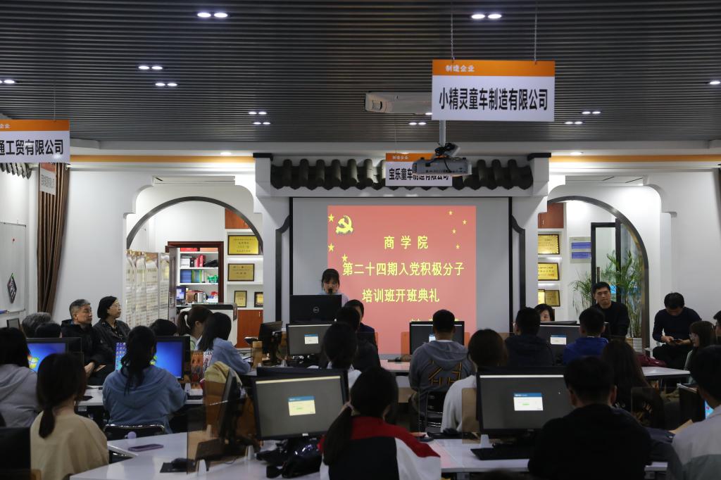 4月21日下午,商学院第二十四期入党积极分子培训班开班典礼在博识北二楼跨专业综合实训室隆重举行,商学院党政领导、科级干部、各党支部书记及140名受训学员参加了开班典礼。开班典礼由院长项桂娥主持。