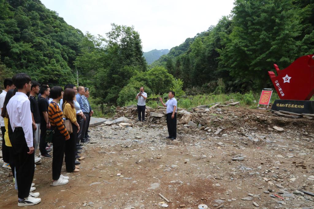上午10:30,商学院教工第一党支部来到石台县新棚村的皖南红军总医院旧址。石台县人大常委会副主任、党组成员,七都镇新棚村党支部第一书记、驻村扶贫工作队队长江洪详细讲解了皖南红军总医院光荣的革命历史,介绍了新棚村在一九四九年前、社会主义建设时期及改革开放以后的发展变化,特别是在脱贫攻坚过程中取得的辉煌成绩。江书记的讲解让现场的人员非常感动和深受教育。
