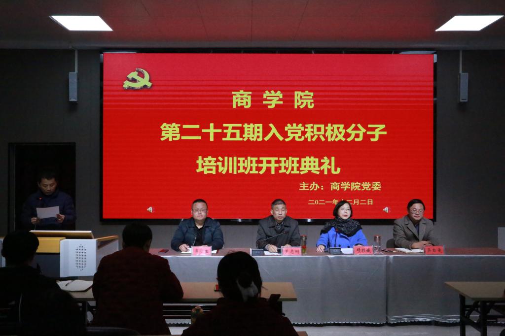 为提高入党积极分子的理论水平和党性修养,商学院第二十五期入党积极分子培训班开班典礼于12月2日晚在博识北401实验室举行。学院党政领导、各党支部书记、科级干部、专职辅导员及全体参训学员参加了开班典礼。开班典礼由院长项桂娥主持。