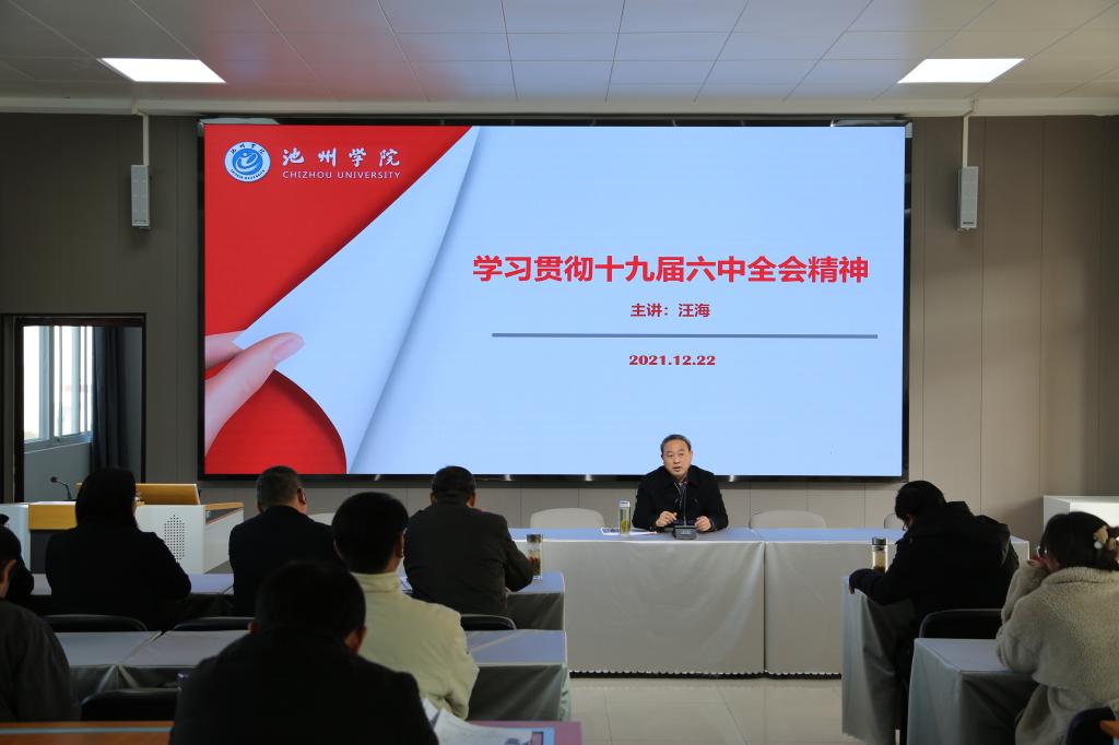 12月22日下午,校党委委员、纪委书记、监察专员汪海到商学院开展党的十九届六中全会精神宣讲。
