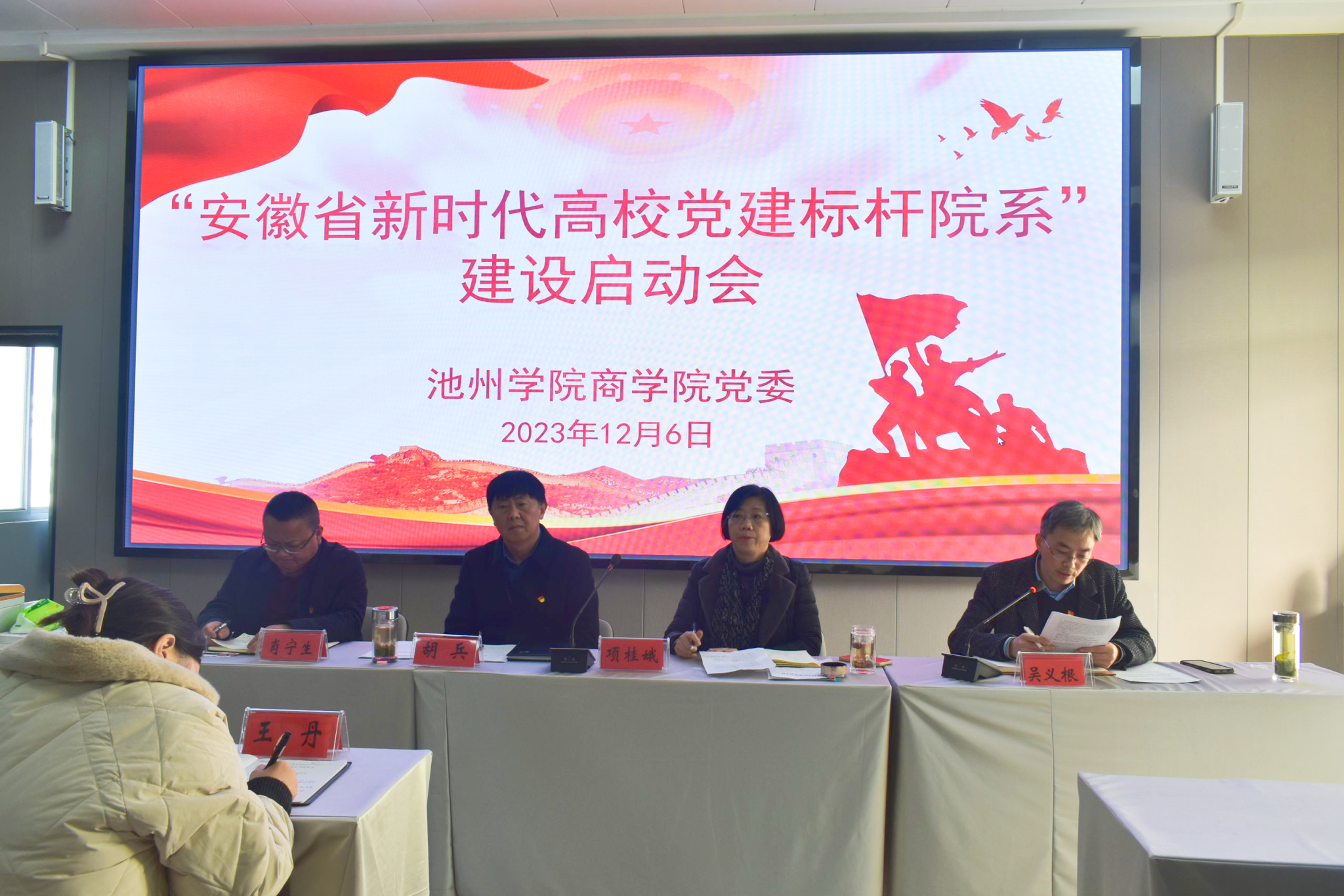 12月6日下午,商学院在博识北401教室召开“全省高校党建工作标杆院系”建设启动会。校党委委员、组织部部长胡兵出席会议并讲话,全体教师以及学生党员代表参加会议,会议由商学院院长项桂娥主持。