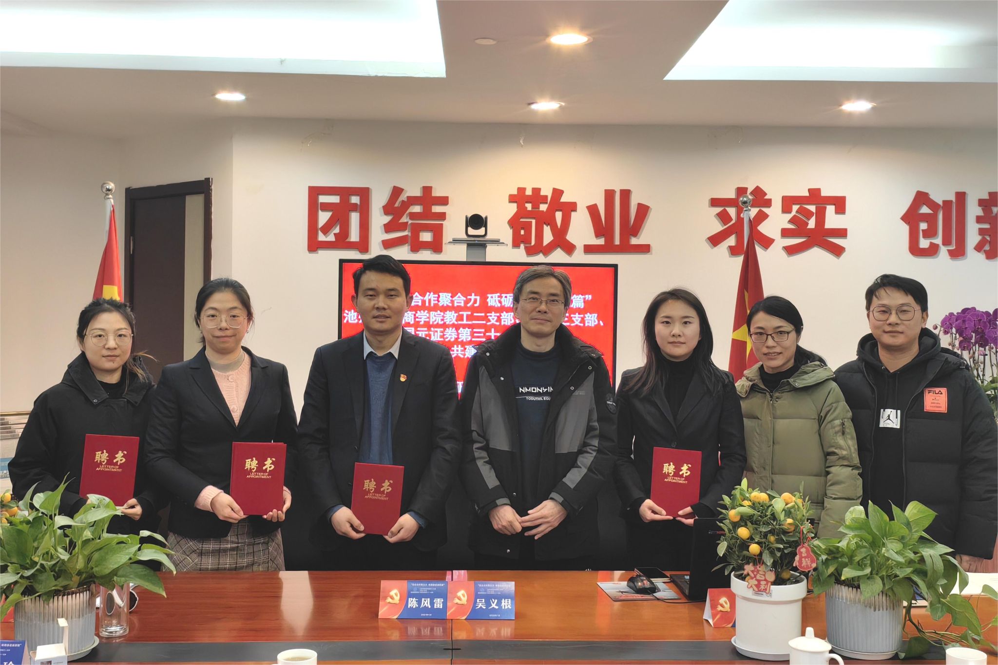 为贯彻落实党的二十大精神,推动党建和教学、科研的深度融合,发挥基层党支部服务地方能力,1月17日,太阳集团网站8722教工第二党支部与国元证券第三十一支部开展以“校企合作聚合力,砥砺奋进谱新篇”为主题的支部共建活动。tyc8722太阳集团院长项桂娥、副院长吴义根、教工二支部书记曾珍、学生三支部书记胡刚、国元证券第三十一党支部书记陈风雷及党员代表参加活动。
