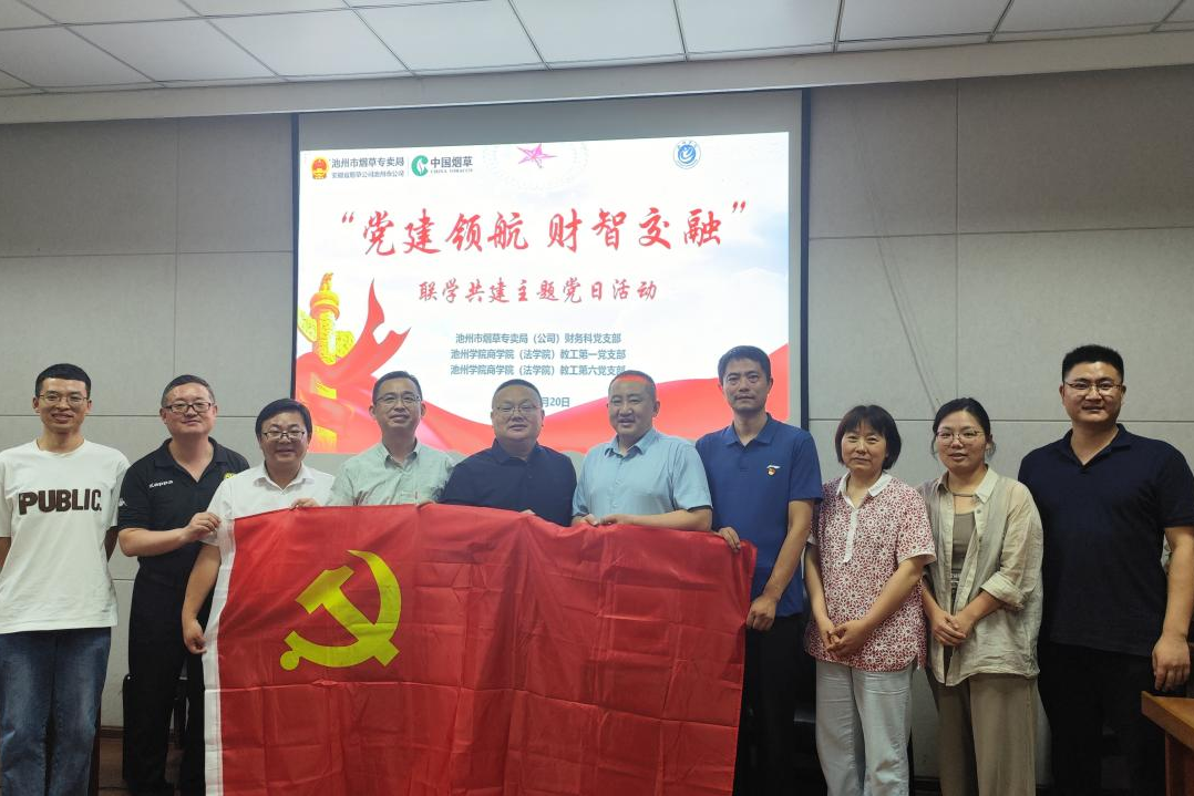 为进一步深化产教融合,推动支部结对共建工作走深走实,6月20日下午,太阳集团网站8722教工第一、第六支部与池州市烟草专卖局(公司)财务科党支部开展“党建领航 财智交融”联学共建主题党日活动。池州市烟草专卖局(公司)财务科党支部书记、财务科长吴广岭、池州市烟草专卖局(公司)信息中心主要负责人舒仁伟、吴旭东,太阳集团网站8722党委书记肖宁生、院长吴自爱、副书记王文广、教工一支部书记、财务管理系主任谭庆、骨干教师李迎春、教工六支部书记张璐、审计系主任吴铖铖及各支部党员出席活动。