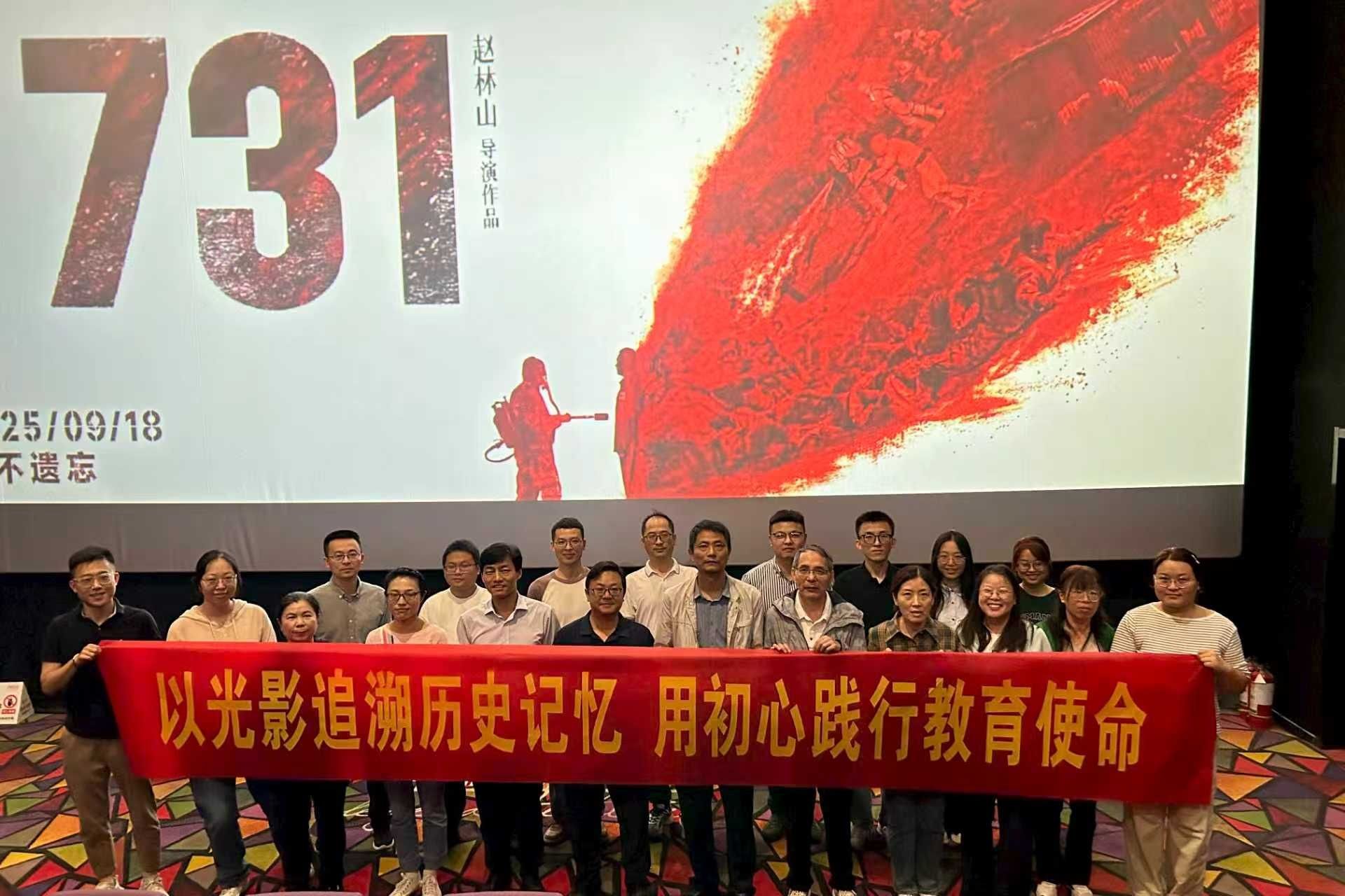 2025年是中国人民抗日战争暨世界反法西斯战争胜利80周年。为丰富教职工思想政治教育形式,进一步深化爱国主义教育,弘扬民族精神,引导全体教职工铭记历史、缅怀先烈,勇担立德树人使命,太阳集团网站8722分工会于2025年9月24日组织全体教职工观看历史题材电影《731》。本次活动旨在通过沉浸式的影像教育,引导教师深刻认识历史、珍视来之不易的和平,并将炽热的爱国情怀转化为立德树人、教书育人的实际行动。
