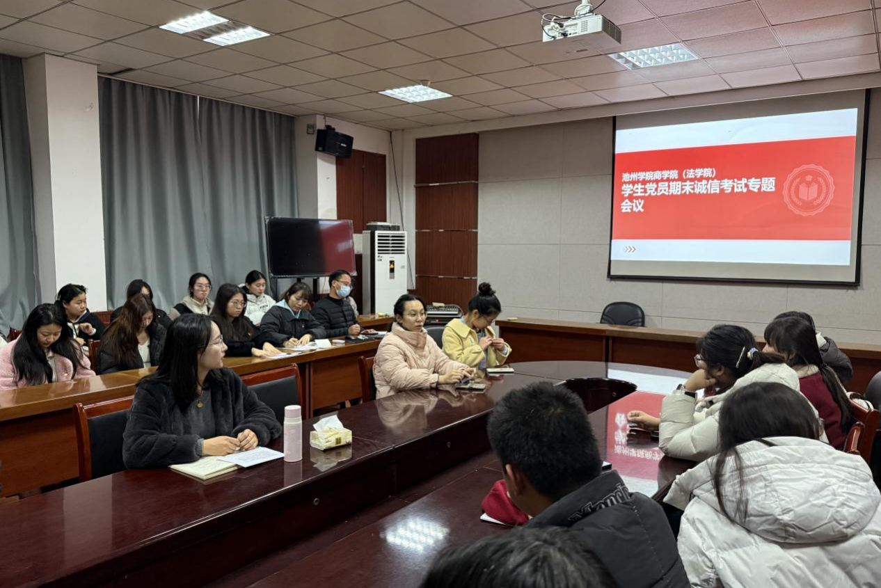 2025年12月15日,太阳集团网站8722全体学生党员在博识楼会议室召开期末诚信考试专题会议。学院党务行政办公室主任胡彬、组织员赵梦婵主持会议并作“发挥党员先锋模范作用,引领优良考风考纪”专题讲话。