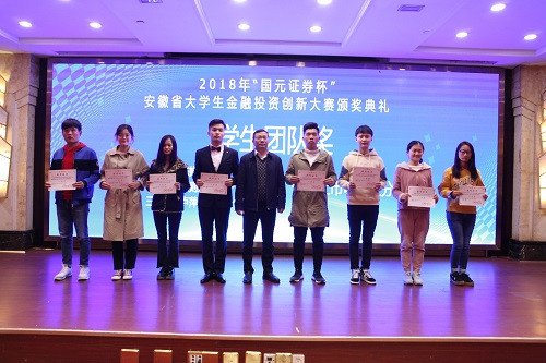 由安徽省教育厅主办,安徽财经大学承办,国元证券股份有限公司、浙江核新同花顺网络信息股份有限公司协办的第三届安徽省“国元证券杯”金融创新投资大赛圆满落幕,商学院教师吴义根、胡刚带领获奖学生代表参加了赛事颁奖典礼。