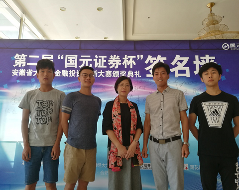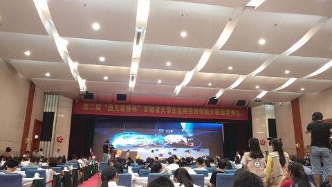 由安徽省教育厅主办,安徽财经大学承办,国元证券股份有限公司、浙江核新同花顺网络信息股份有限公司协办的第二届安徽省“国元证券杯”金融投资大赛圆满落幕,商学院院长项桂娥教授、商学院胡鹏老师和商学院胡刚老师带领我校学生代表参加了本届赛事颁奖典礼。