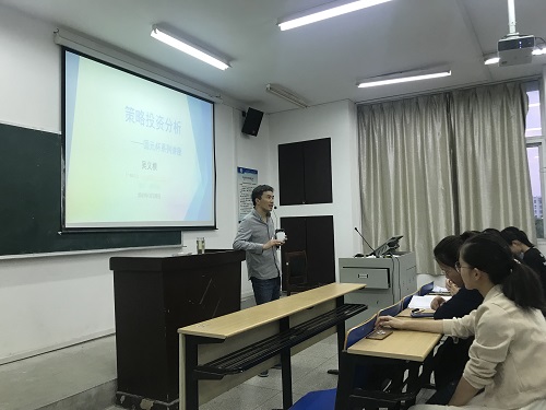 为帮助第四届“国元证券”杯参赛大学生顺利完成比赛,商学院于4月8日晚在博识楼举办了策略投资类培训讲座,商学院吴义根老师主讲。
