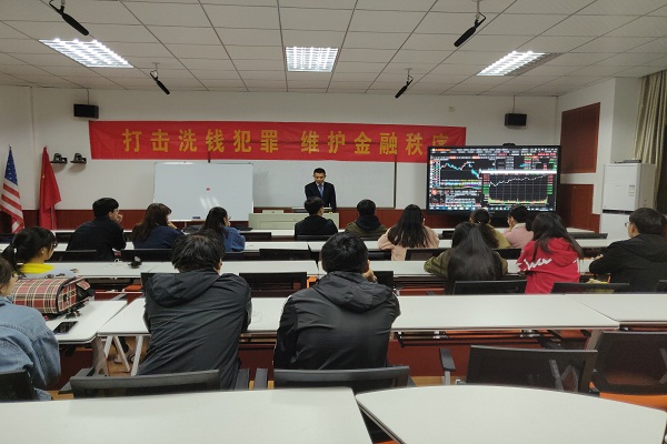 11月13日晚,为拓展学生金融投资视野,宣传反洗钱犯罪知识,同时为2018年“东方财富杯”赛事省赛收官阶段做好准备,商学院邀请国元证券青阳路营业部投资经理陈风雷一行来我院做讲座。