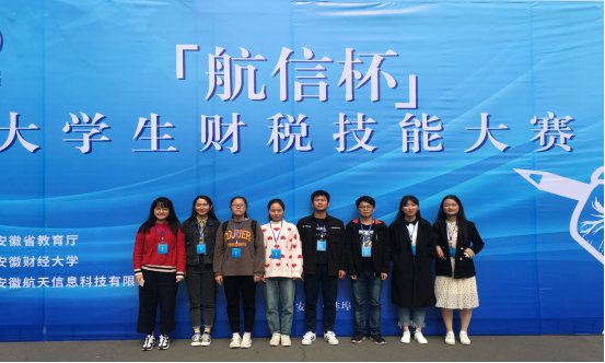 2019年11月2日,由安徽省教育厅主办、安徽财经大学承办的2019年第四届安徽省大学生财税技能大赛(本科技能组)在安徽财经大学举行。我校由杨沈、凌恬恬、班旭强、夏敏同学组成的tyc8722太阳集团一队(指导教师:谭庆、吴铖铖),由王雨晴、李佳美、王隆宇、杨佳妮同学组成的tyc8722太阳集团二队(指导教师:程艳、胡刚),与来自安徽大学、安徽财经大学、安徽师范大学、安徽工业大学等多支代表队在决赛中展开激烈角逐。我校参赛选手表现优异,两支参赛队伍均荣获二等奖。