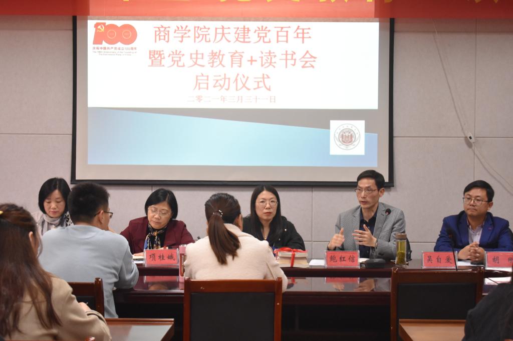 为使商学院广大学子从党史教育中感党恩知报恩,从阅读中获得不竭的心灵滋养和精神力量,在建党100周年到来之际,商学院以习近平新时代中国特色社会主义思想为指导,围绕学校党史教育及爱生文化倡导,结合商学院‘三全育人’”综合改革试点项目,策划了“庆建党百年暨‘党史教育+’读书会”活动。