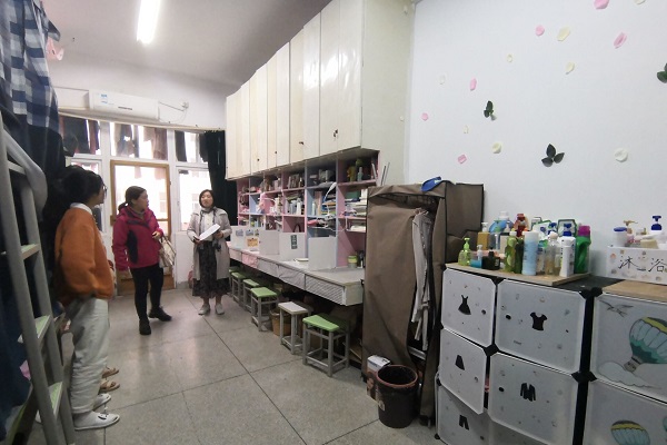 为落实“三全育人”工作,加强学生寝室安全卫生管理,进一步增强学生劳动素养培养力度,3月31日下午,商学院党委副书记王娟、党委办公室主任苏飞、学生办公室主任胡刚、团委副书记方甜甜及辅导员在学生会干部的陪同下深入走访学生寝室,组织开展了本学期第一次学生寝室安全卫生大检查。